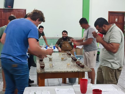 Capacitação em análise sensorial e debates sobre tecnologias e sustentabilidade na cafeicultura.