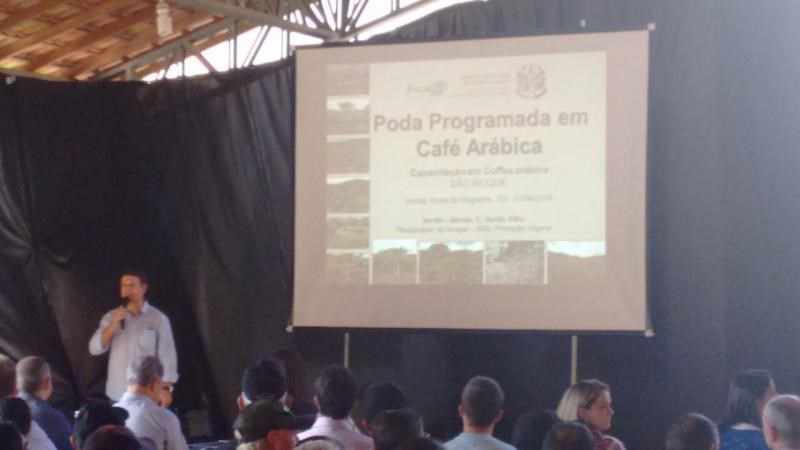 A Poda Programada do Café Arábica foi tema de palestra ministrada pelo Instituto Capixaba de Pesquisa, Assistência Técnica e Extensão Rural (Incaper), durante a 18ª Festa do Café, em Venda Nova do Imigrante.